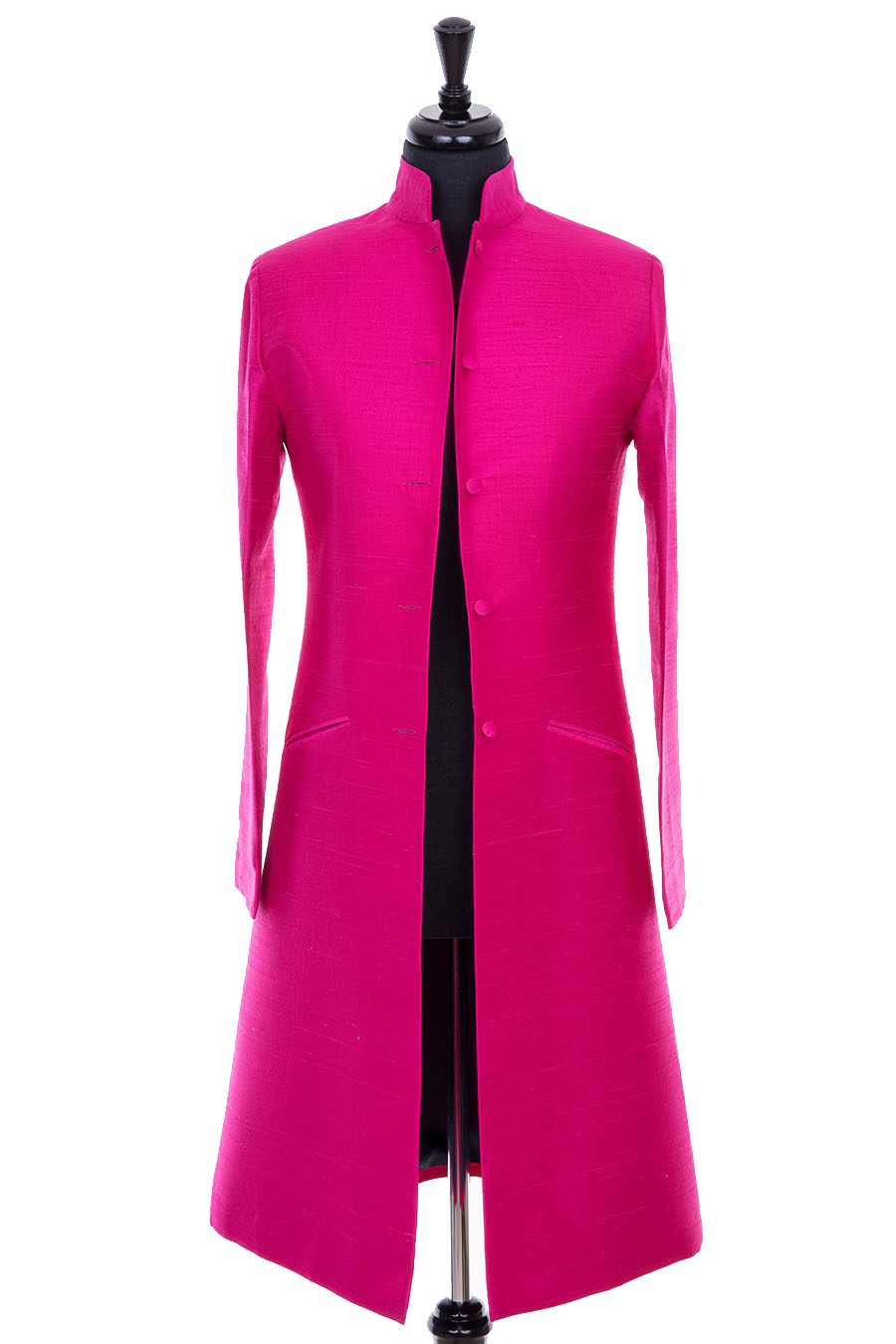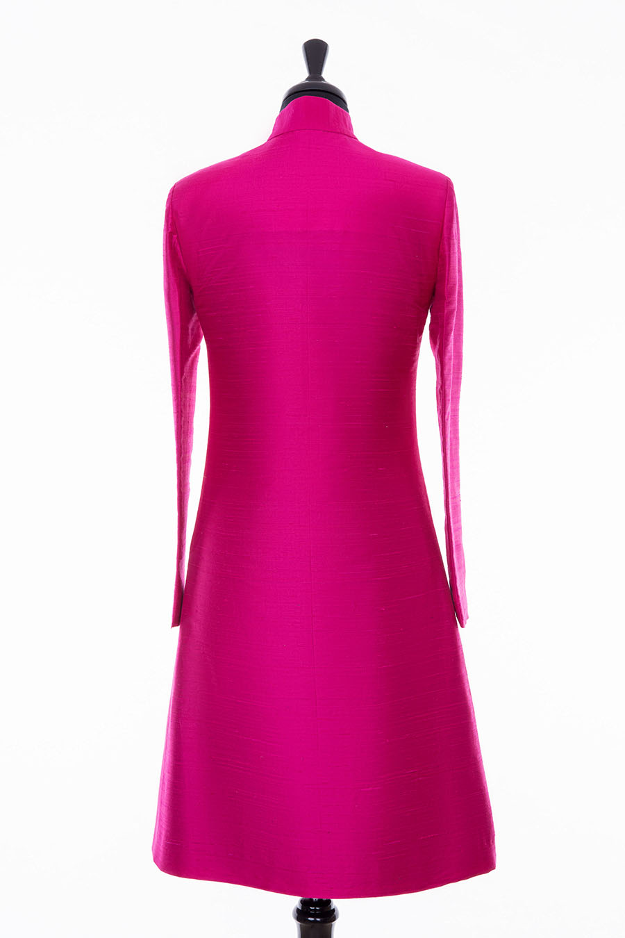 The classic women’s Nehru Coat is a simple, subtle and absolutely beautifully tailored women's coat. It is the absolute epitome of what Shibumi means. This Nehru collar frock coat is a flattering style for most shapes and its mandarin collar gives it a classic, timeless style. This stunning coat looks good with absolutely everything, and can be worn to weddings for Mother of the Bride or Groom, the opera, theatre, the races and even out for lunch. You will exude an effortless elegance whether you pair it with trousers, a skirt, or one of our new silk dresses - which will provide you with a complete Shibumi outfit! The simple cut of the Nehru collar will have you wanting one in every colour! Available in all of our cashmere, plain raw silk and embroidered silk fabrics. UK sizes 6-26.