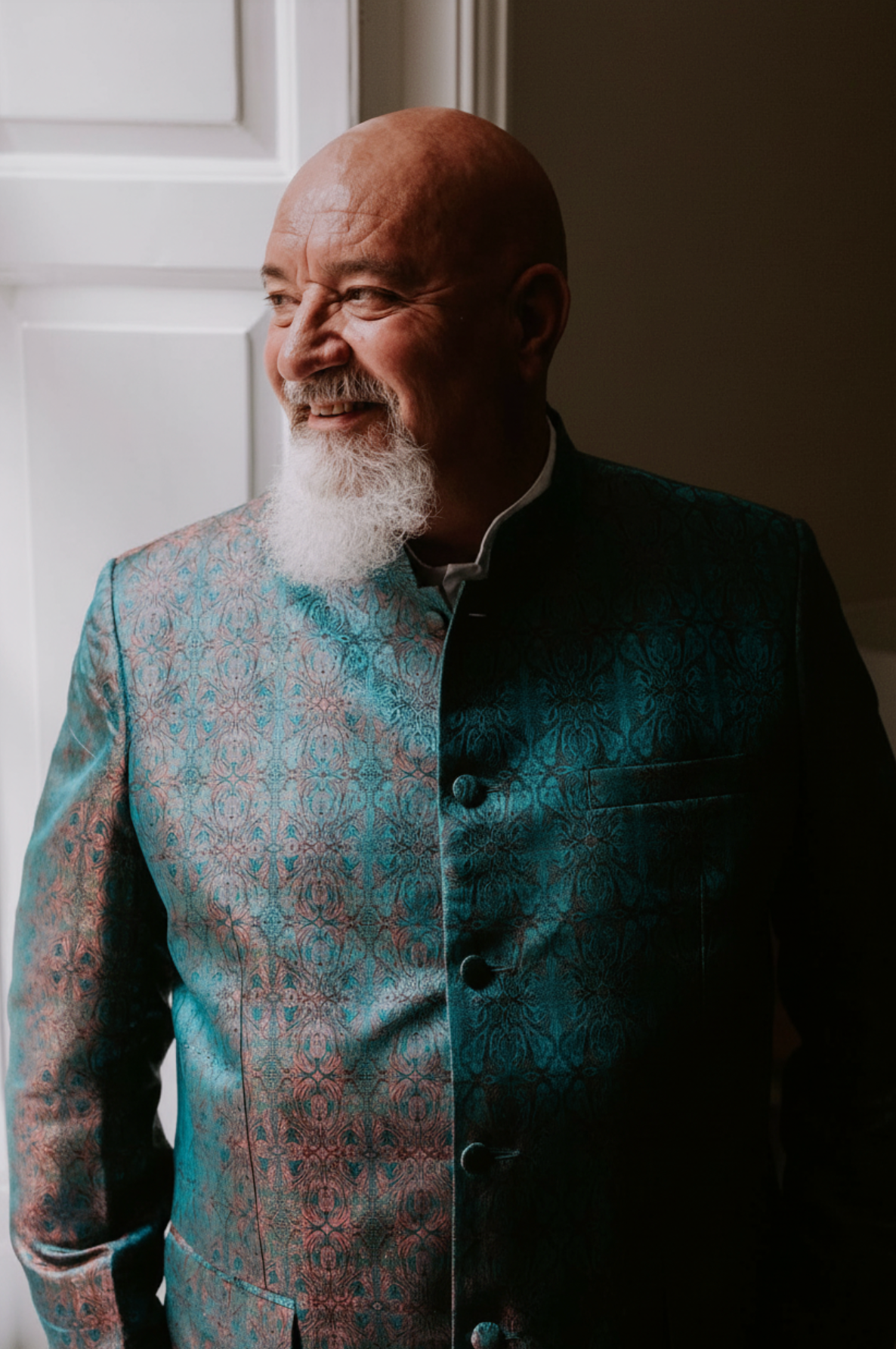 A classic Nehru style jacket in dark teal with a smart mandarin collar. This men’s jacquard silk jacket is so cool; wear it to a wedding and then again with jeans to really liven up your outfit. Featuring covered buttons on the front, fully lined with inside pockets and a secret pocket. This beautifully tailored jacket is sure to turn heads.