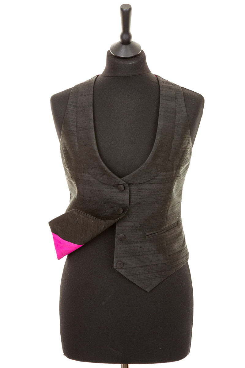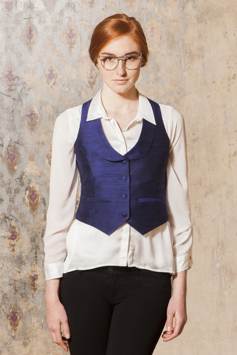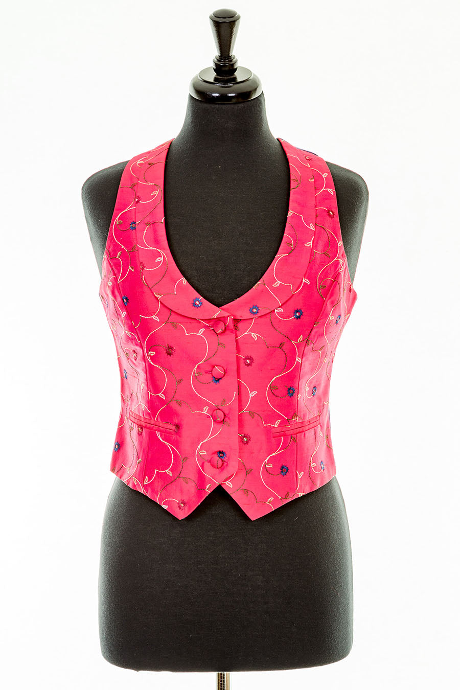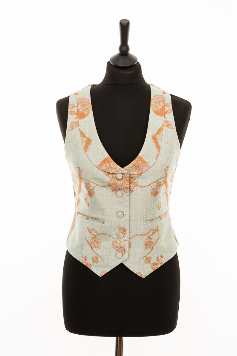 We have two styles of women's waistcoats in our collection, our scoop neck women's waistcoat and our classic women's waistcoat. The scoop neck waistcoat features a peter pan style collar and a cropped tailored fit, ideal for wearing with jeans and a t-shirt or over a shirt to brighten up your work wardrobe. The classic women's waistcoat is single breasted and cut in a flattering shape to suit all shapes and sizes. Both waistcoats are perfect to add colour to a work outfit, to wear to the races or to dress up a pair of jeans.