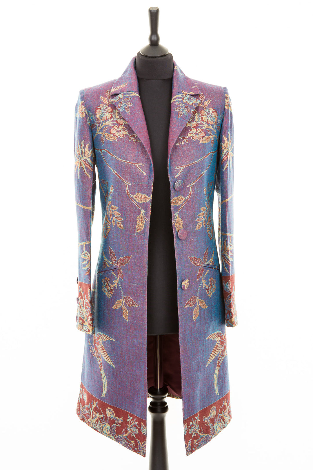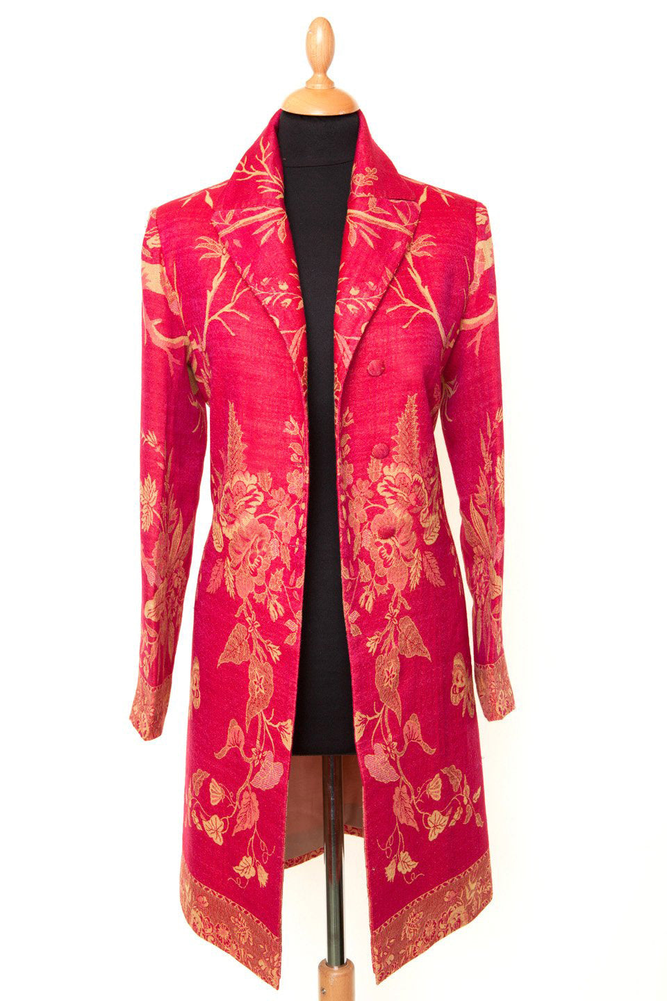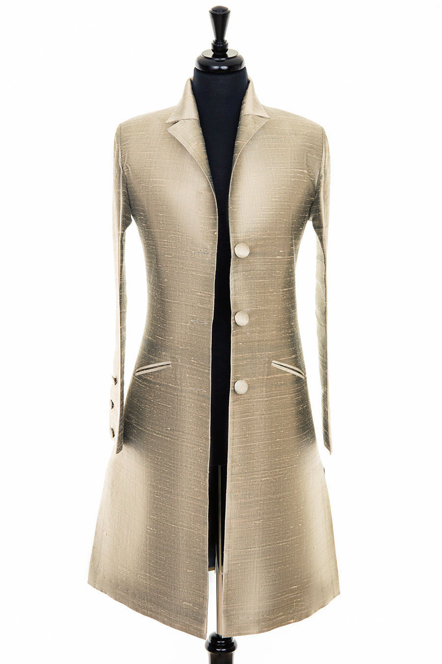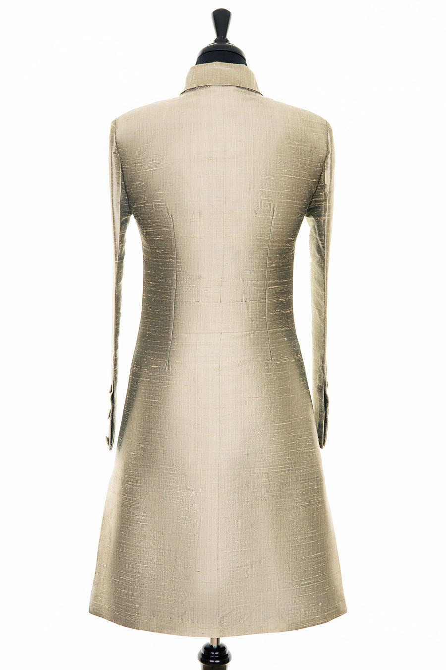 The Grace Coat is our most popular knee length single-breasted women’s cashmere or silk coat. It can be worn smart or casual depending on what's worn with it. It is one of our best-selling coats and is so useful due to its versatility, wear it to a wedding over a dress one day, and the next day with jeans out for lunch. This coat is designed to be worn open, with vents at the sides and a half belt at the back to provide a flattering fit. Available in all of our cashmere, plain raw silk and embroidered silk fabrics. UK sizes 6-26.
