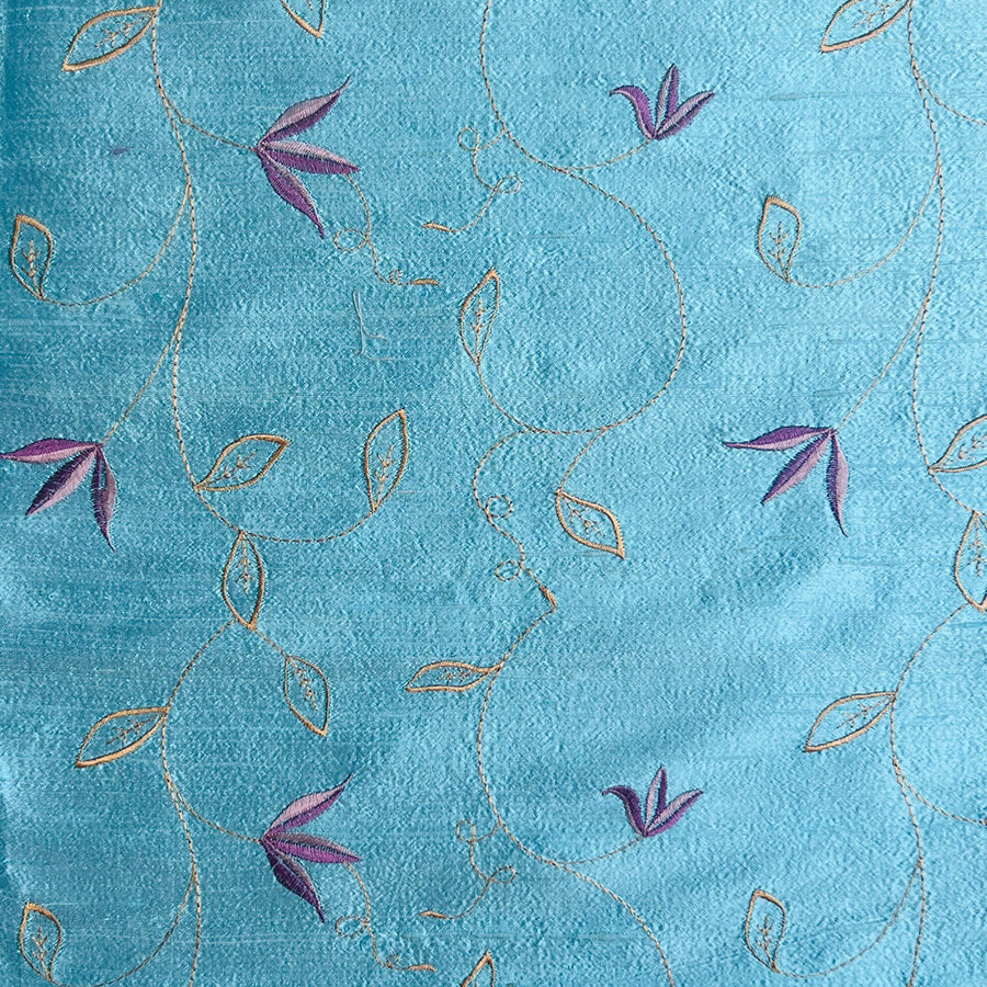 The Avani Coat. Beautifully tailored for a flattering fit with a soft curved collar and 7 small covered buttons on the back of the sleeves. It can be worn open but looks best when fastened with the 3 small buttons on the front. This sky blue embroidered silk wedding coat is elegant, stylish and beautiful. A perfect dress coat for weddings and smart occasions.