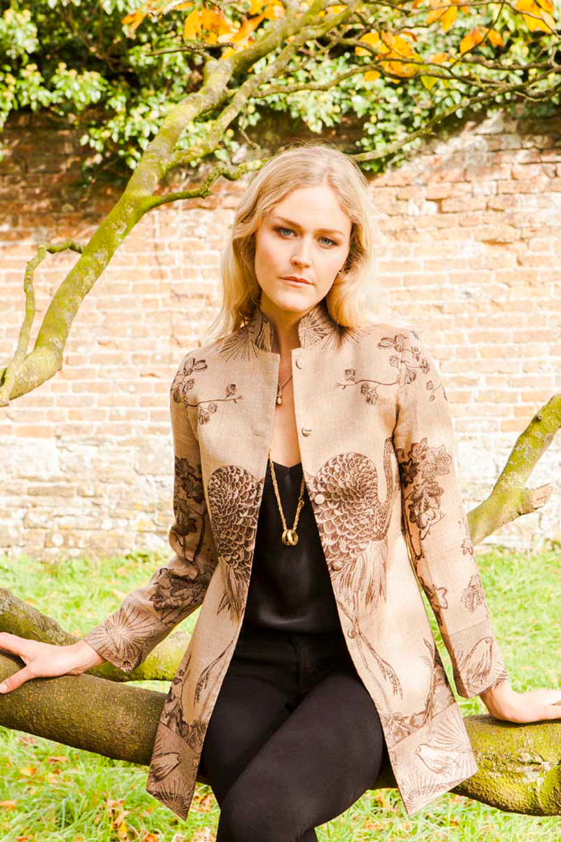 This stunning longline jacket is simply cut with a classic Nehru collar. The Long Nehru jacket is very stylish and elegant and we think it looks best when worn with trousers. This chic jacket looks flattering on everyone and works well with silk cigarette trousers, smart trousers or jeans. If you’ve never tried this style before, we promise you will fall in love with it. It is such a reliable piece that you can always depend on to make you feel wonderful.  Great for going out for dinner, a smart lunch or drinks party, you can be sure your understated style will be noticed by others. Whether a silk jacket or cashmere jacket the fabric is light enough that the jacket can be kept on for a lunch or dinner party. Available in all of our cashmere, plain raw silk and embroidered silk fabrics. UK sizes 6-26.