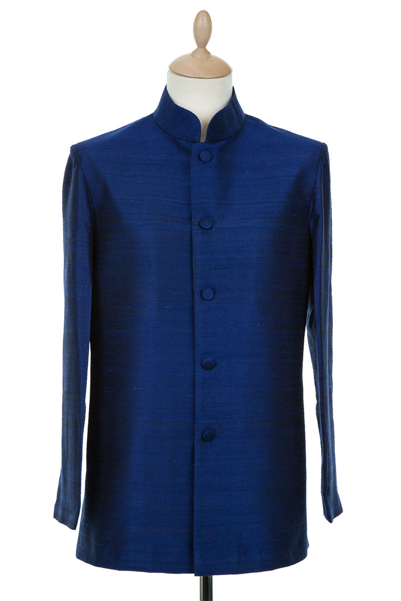 We have two styles of silk and cashmere men’s jacket; A Classic Nehru collar style jacket and a traditional smart men's blazer. Our timeless Men’s Nehru Jacket is a beautifully tailored jacket that will bring style and interest to any man’s wardrobe. Our Men’s Blazer is perfect for the traditional man who wants to add a pop of colour to their outfit, whether that be for a wedding or to be worn with jeans. Available in cashmere, plain raw silk and embroidered silk fabrics. UK men’s sizes 34 -56.