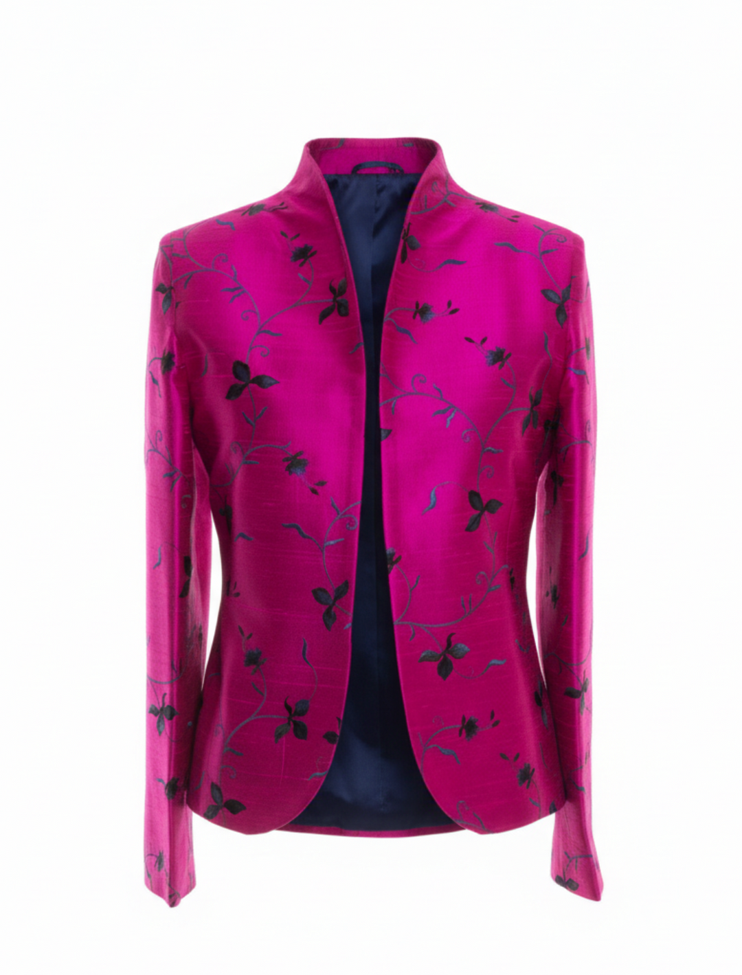 Our collection of short jackets are wonderfully versatile, wear them as a layer for a wedding guest outfit or pair them with jeans for an elegant casual look. There is a short jacket to suit any style whether it be the soft curved collar of the Anya, the classic tailoring of the Nina and Classic Blazer, the statement style of the Nehru jacket or the feminine cut of the Juna. Our jackets come in sizes 6-26 as standard so you can feel beautiful no matter your size or shape. We also have a made to measure service available to give you the option to get a jacket perfectly tailored to you.
