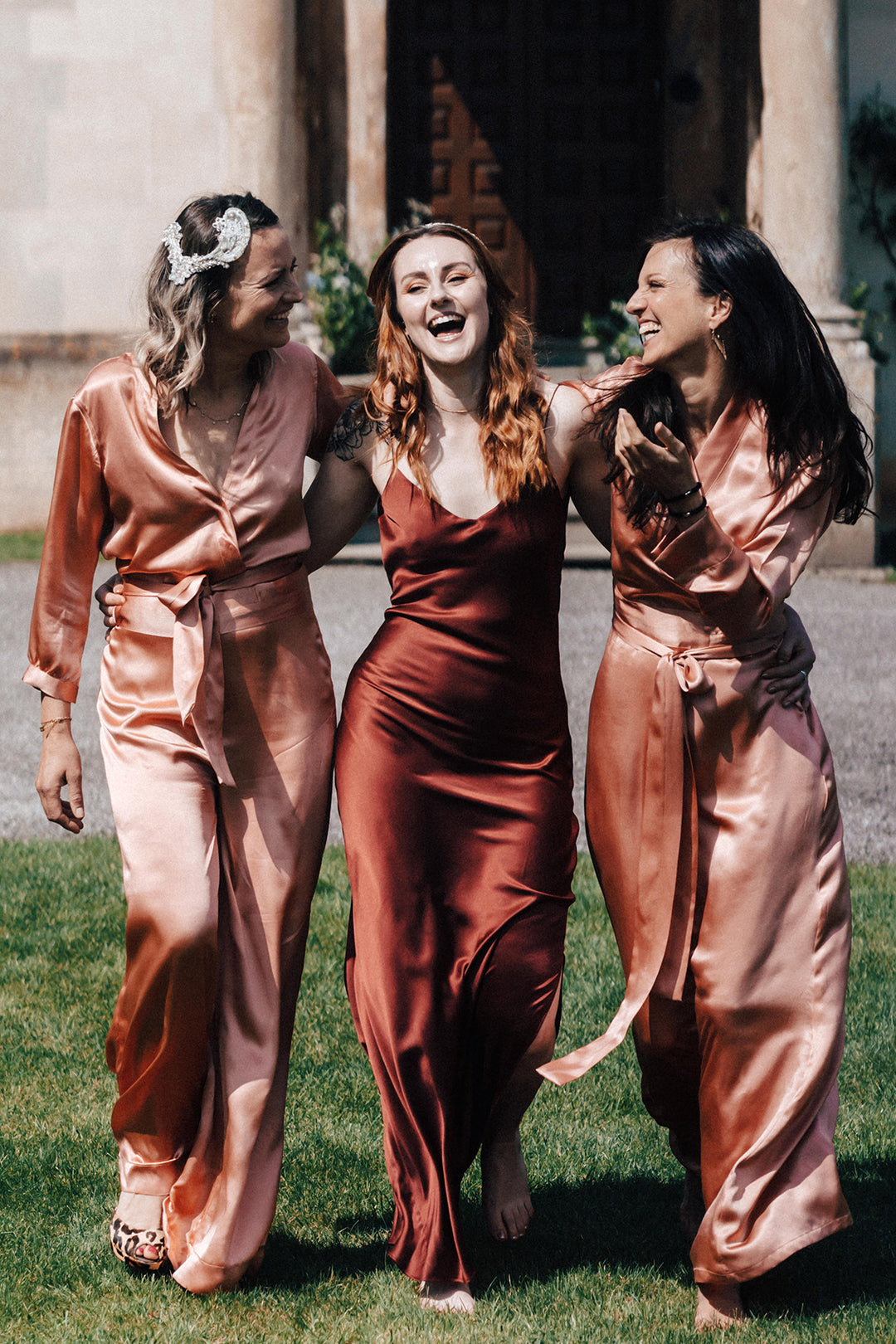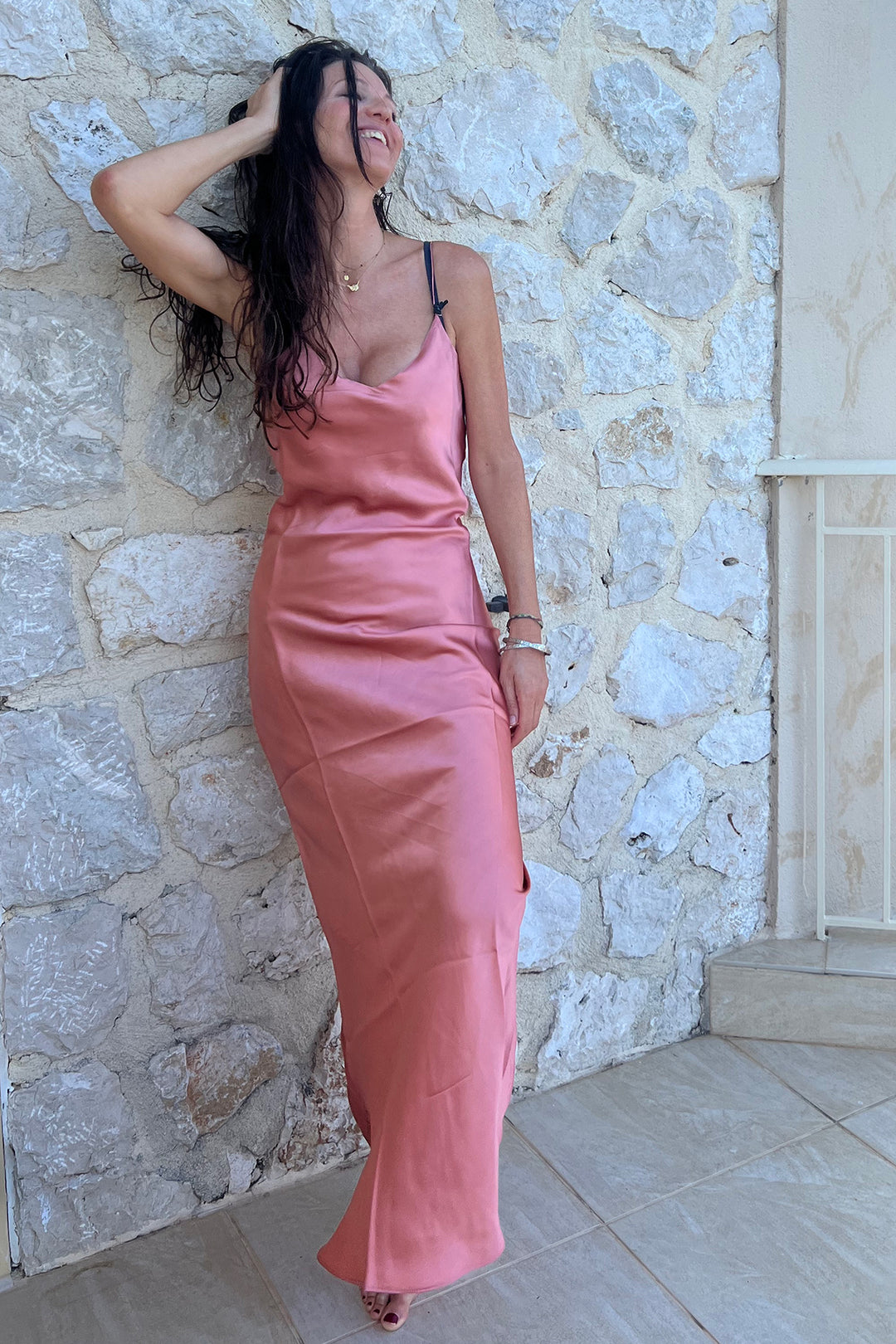 Our satin silk slip dress is the epitome of elegance. This full-length dress features a slit on one side, spaghetti straps, a scoop back and a gorgeous soft v-neckline. A glamorous silk slip dress for bridesmaid dresses, prom dresses or evening wear. It can be worn casually at home as a luxurious silk nightdress or dressed up with heels as part of a bridal party, wedding guest outfit or cocktail party. This silk slip dress is available in sizes X-Small, Small, Medium, Large and X-Large, in the colours you see below.